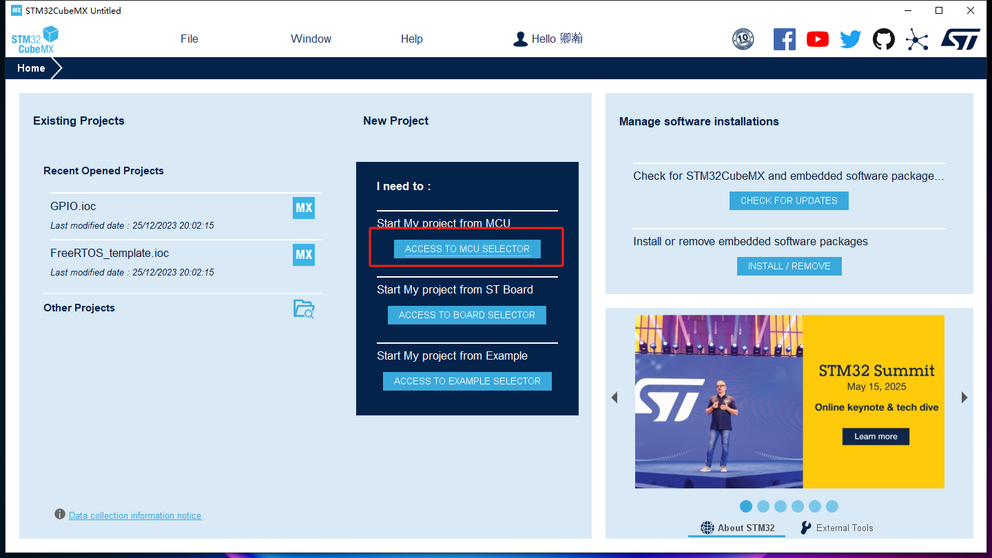 选择MCU型号, 这里选择FryPi炸鸡派STM32开发板所使用的
