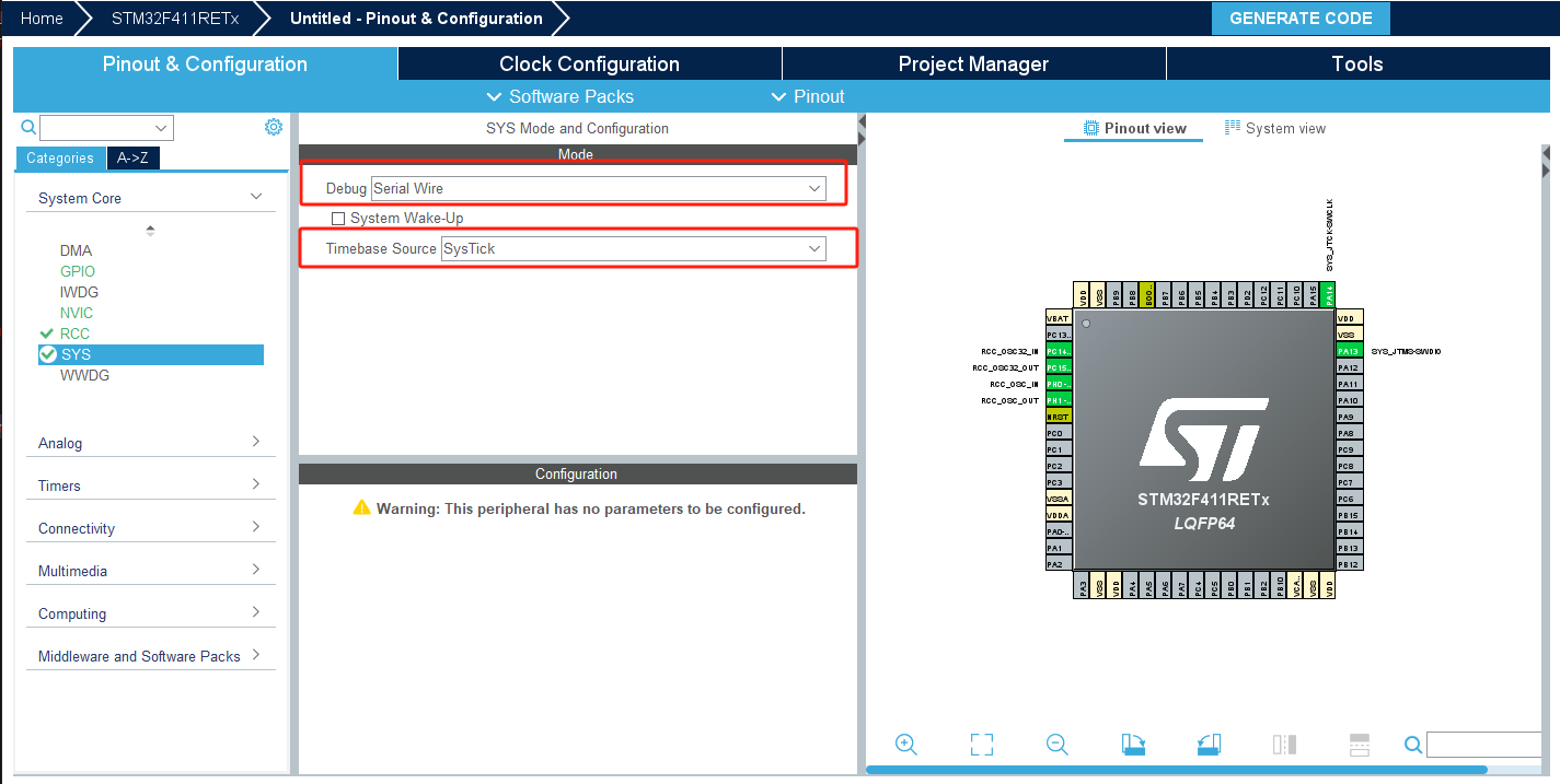 timebase使用Systick, 但如果使用了RTOS, 这里就建议换成其它的, 这个后续再说。