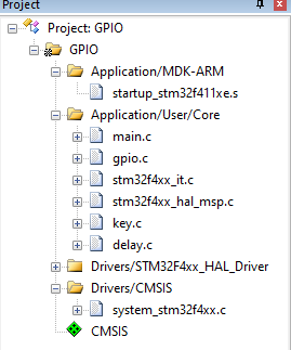 标准CubeMX生成的文件有下面这些, Core主要为生成的main和gpio设置和中断函数等相关的内容, HAL_Driver为移植过来的HAL库,大家可以拿到工程继续摸索。