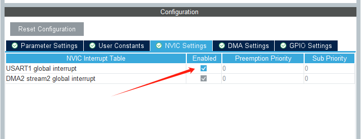 不知道中断是什么的,请在网上先自行查阅学习一下. Preemption是抢占优先级,Sub Priority是次优先级