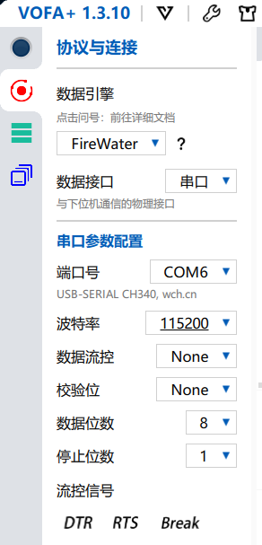 设置好vofa的设置,然后打开串口连接,发现一直有数据传电脑上啦~ 确实是差不多0.5秒一个数据发过来呢~ vofa的下载和使用,大家直接网上搜就行,一直强调自学能力!