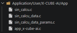 - app_x-cube-ai.c: 负责业务侧调用流程。初始化模型、准备输入、调用推理、后处理输出。