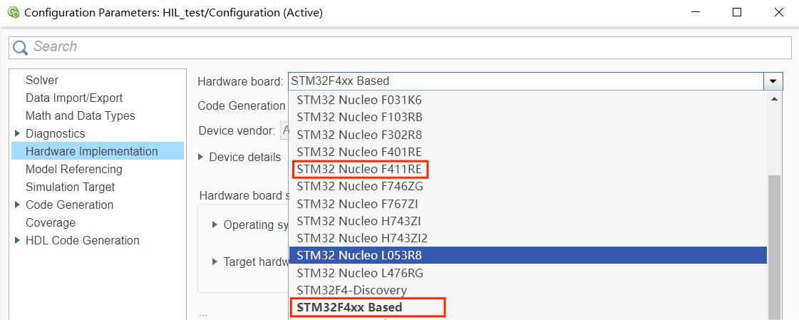 同时,选这个MCU的原因也是因为STM32F411REU6可以完美替代原来智能手表项目的CEU6,而且在simulink中也有F411的硬件选项。